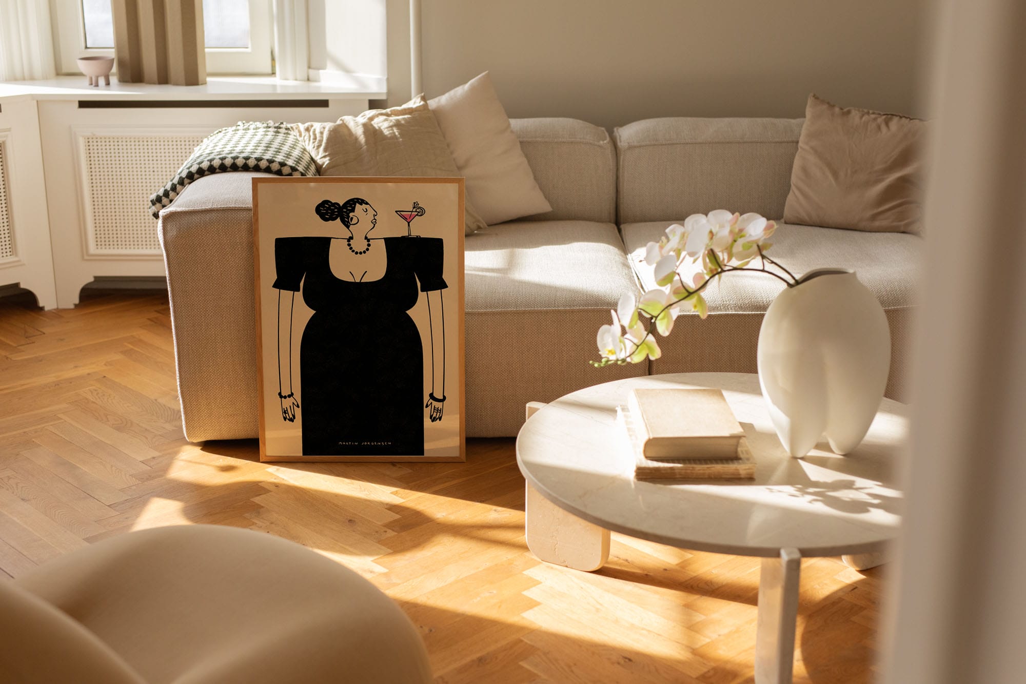 The art poster “Cocktailparty woman” by artist Martin Jørgensen is an illustrated poster curated by Peléton.