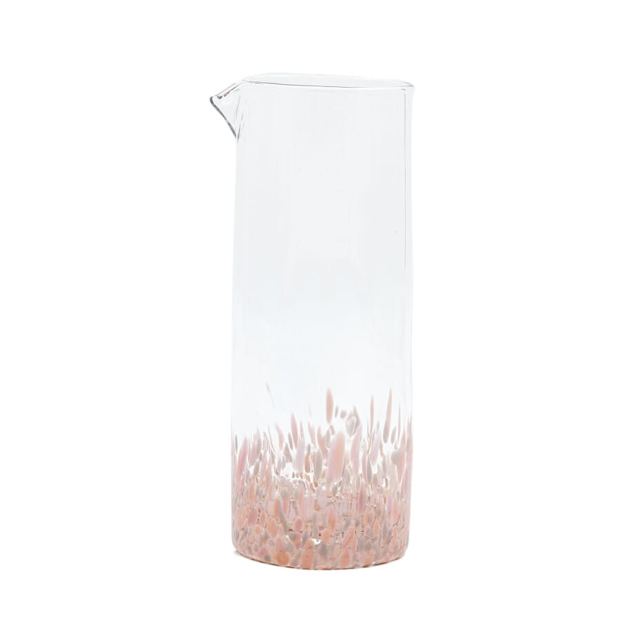 Naše karafe Murano, brezčasen dizajn s pridihom. Te karafe s tradicionalnim beneškim dizajnom in posipom s prazničnimi konfeti izdelujejo v majhni družinski delavnici tretje generacije. Vodita ga dva strastna brata, ki pustita, da njihovi unikatni predmeti pripovedujejo zgodbe o tem otoku, ki slovi po umetninah iz stekla. Videti, kako spretni obrtniki talijo steklo v vročih pečeh, je prava paša za oči. Uporabljajo prastaro tehniko, kjer steklo pihajo z usti in ga zvijejo v koščke barvnega stekla, da ustvarijo te izjemne vzorce. Vsaka karafa je edinstvena in presenetljiv dodatek k vaši mizi.