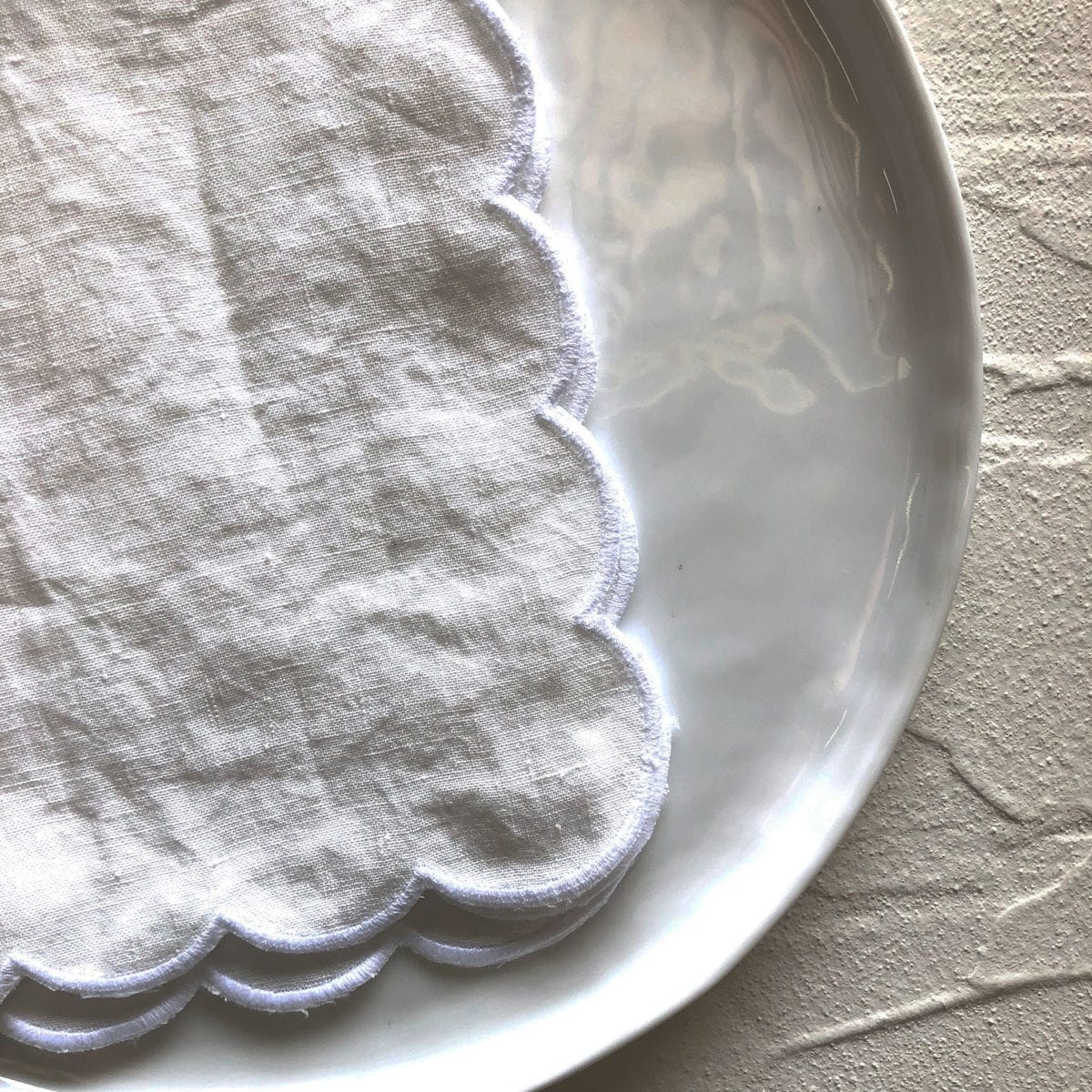 Ti laneni prtički s prefinjenim školjkastim robom so izjemno preprost dodatek k vsaki mizi. Izbirajte med poljubnimi barvnimi kombinacijami za drzen ali subtilen zaključek namiznega pogrinjka, ki bo vaši poletni mizi dodal nevsiljiv pridih barve in sloga.